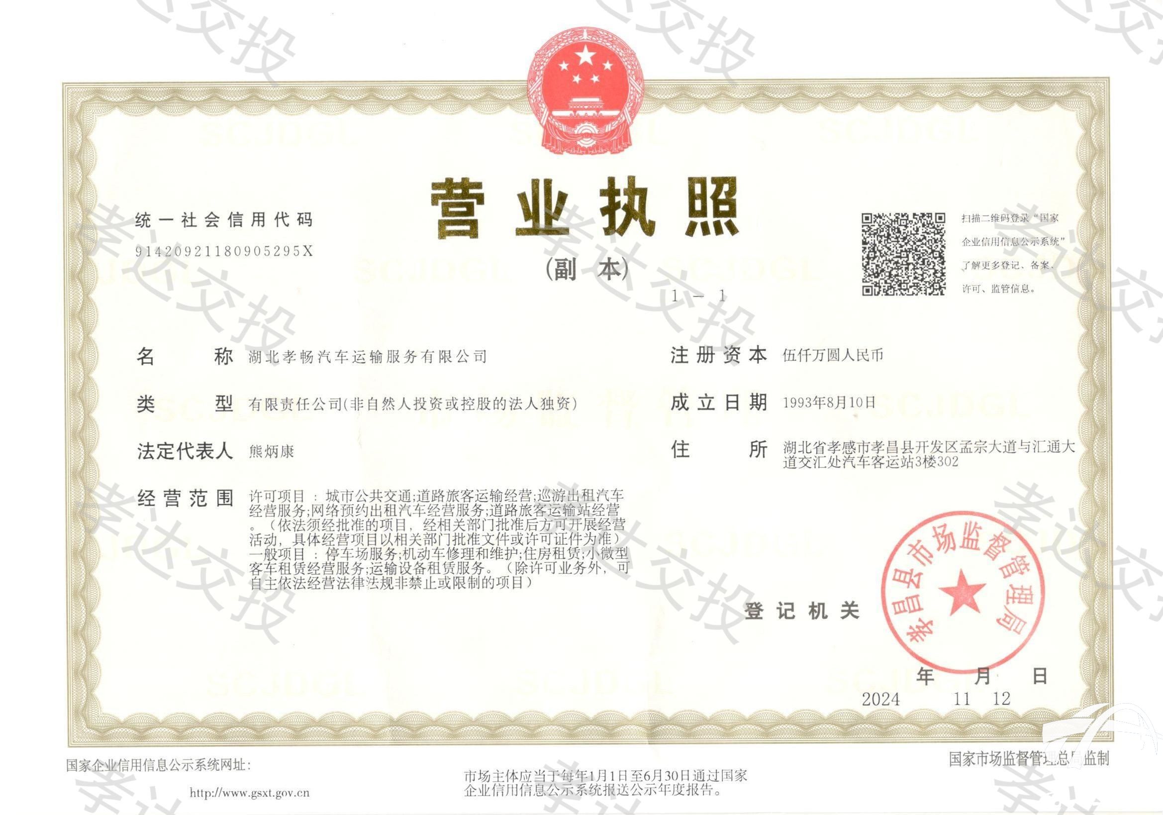 11月12日,孝達交投旗下汽運公司正式完成改制,并更名為“湖北孝暢汽車運輸服務有限公司”。